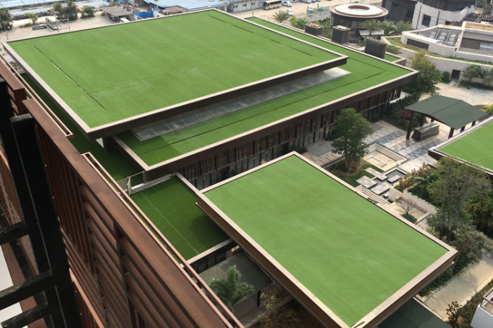 仿真草坪經過特殊處理,具有優秀的抗紫外線和耐老化特性。這使得草坪能夠抵抗長時間日曬造成的褪色和材料退化,保證草坪在各種天氣條件下都能保持最佳狀態。無論是炎炎夏日還是風雨交加,仿真草坪都能保持其自然美觀的外觀,為用戶提供一個全天候的綠色休閑空間。