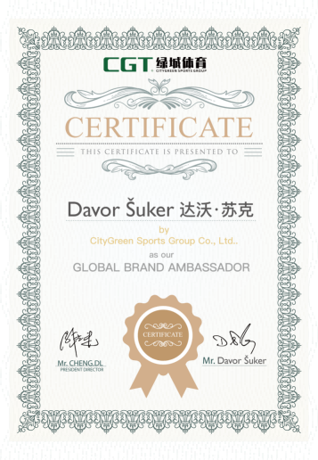 2025年4月16日,綠城體育集團股份有限公司(簡稱CGT綠城體育)正式宣布:1998世界杯金靴獎得主/國際?聯百?傳奇球員/前克羅地亞足協主席/前歐足聯執行委員會成員Davor Šuker達沃·蘇克先生,正式出任公司全球星推官。